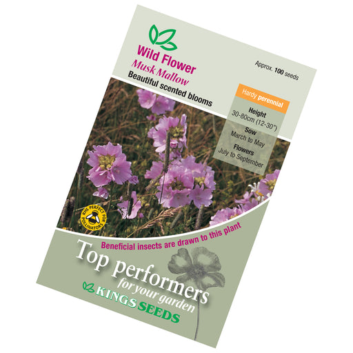 Kings SeedsMallow Musk - Delicate large rose pink flowers (sometimes white) and decorative finely cut foliage. Habitat: old pastures and waysides. Ht 60cm.Pac...