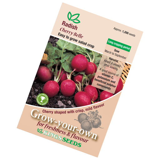 Kings SeedsCherry Belle, much like their name are cherry shaped and cherry coloured. They contain a pure crisp white flesh which is slow to go pithy and woody...