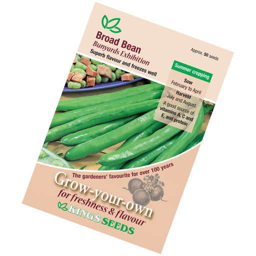 Kings SeedsDescription Long pods with bright green beans of outstanding flavour. Freezes well and gives an early and heavy crop. Seed Count - 50 When to sow ...