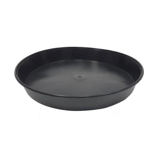 Product description 45cm round Plastic SaucerIndividual injection Moulded plastic. Product details Colour - Black SizeExternal = 460x55mm (with lip...
